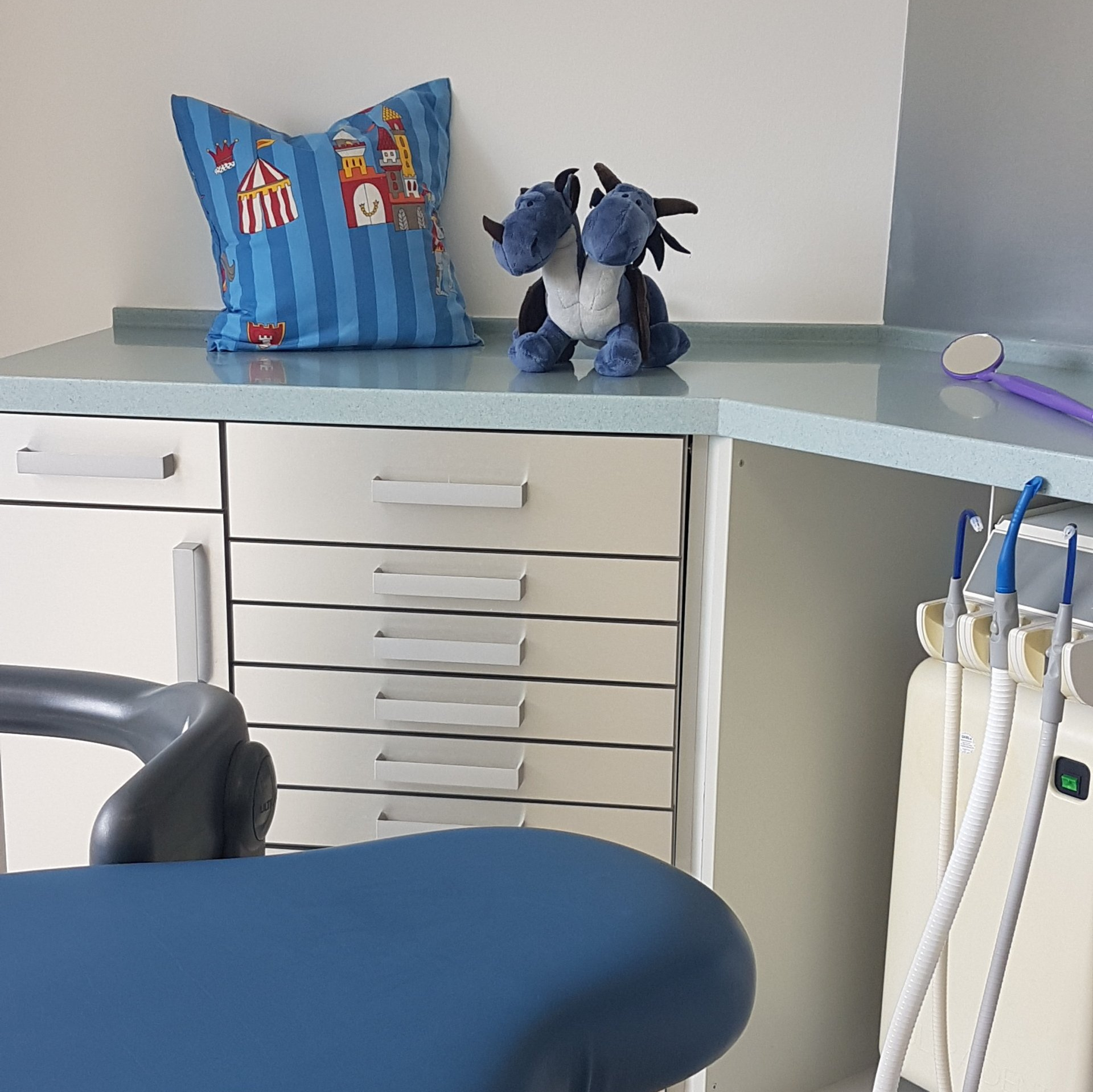 Für Milchzähne verwenden wir Glasionomerzemente und Compomere. Ihre Materialeigenschaften ähneln denen der natürlichen Milchzahnsubstanz. Deswegen und wegen ihrer schnellen Verarbeitung bietet sich ihr Einsatz in der Kinderzahnheilkunde besonders an.